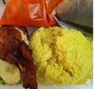 Looking for a classic malay dish to eat? You have come to the right place. Enjoy this amazing pulut kuning with rendang ayam to be eaten on the go! The pulut kuning are packed conveniently, making it easy to eat.